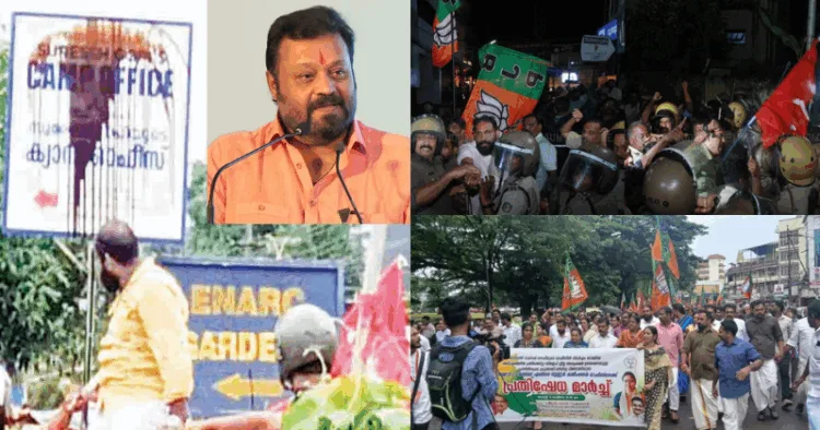 Raising an issue, amplifying it among the crowd, bringing them onto the streets, and indulging in violence has been the standard template of Communists for decades. To deploy this, the Kerala CPM party members relied on Rahul Gandhi’s accusations against the Election Commission over voter lists, and brough its cadre onto streets attacked the office of Union Minister Suresh Gopi, MP, on August 12 in Thrissur. They defiled the direction board with black oil, accusing the BJP leader of manipulating the voters’ list ahead of the 2024 Lok Sabha polls. Some leaders even went to the extent of demanding Suresh Gopi’s resignation as a Member of the Lok Sabha. The attack took place in the evening.