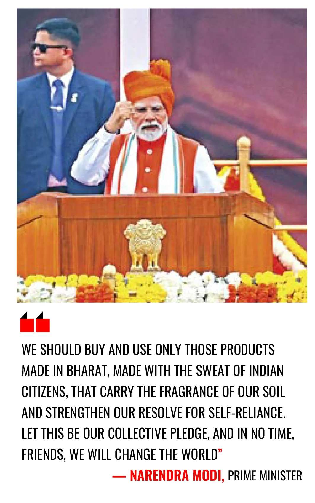 “Those who lived by the mantra of an independent Bharat gave us freedom. Now, the mantra for 140 crore Indians should be a prosperous Bharat. If the sacrifices of millions could bring us freedom, then with the resolutions, hard work, self-reliance, promotion of “Vocal for Local,” and the chanting of the mantra of Swadeshi by millions, we can also create a prosperous Bharat. That generation dedicated itself to a free Bharat; this generation must take bold new steps for a prosperous Bharat, that is what the times demand,” said Prime Minister Narendra Modi from the Red Fort in his Independent Day speech.