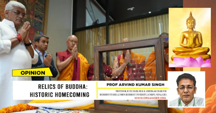 In a moment of deep civilisational significance and cultural resurgence, the Sacred Relics of the Buddha, originally excavated from Piprahwa in 1898, presently situated in Siddharth Nagar District of Uttar Pradesh, have been brought back to Bharat after 127 years. The repatriation of the Buddha’s relics to Bharat represents a momentous event, not only for the Bharatiya populace but especially for the Buddhist community. This act symbolises a reconnection with the spiritual heritage of Bharat, where Buddha Dhamma originated over two millennia ago.