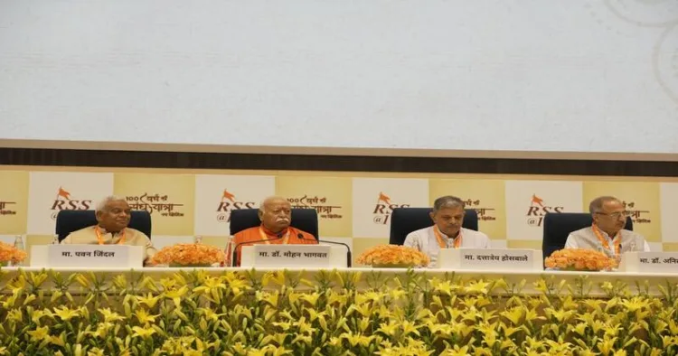 NEW DELHI – In a bid to counter the lack of authentic information about the Rashtriya Swayamsevak Sangh (RSS), Sarsanghchalak Dr Mohan Bhagwat delivered a candid and fact-based address in New Delhi on August 26, 2025. The event, held at the same venue as a similar interaction in 2018 ie Vijnan Bhavan, was designed to clarify the Sangh’s purpose, history, and foundational principles, moving the discussion from perception to verifiable facts.