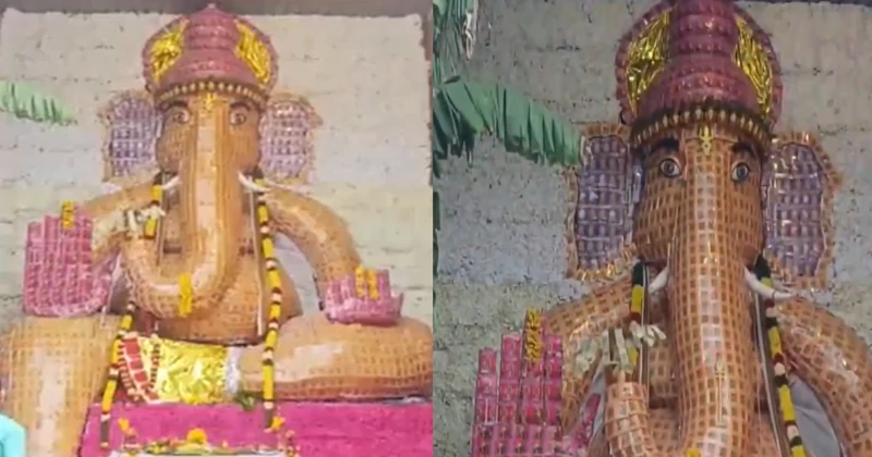 In Chennai’s Mannali area, devotees have created a unique Ganesh murti crafted from over 7,500 religious books, drawing wide attention during Ganesh Chaturthi celebrations. The installation comprises 5,000 copies of the Bhagavad Gita, 1,500 Vel Virutham, and 1,008 Murugan Kavasam books, symbolising the fusion of knowledge, devotion, and spiritual unity.