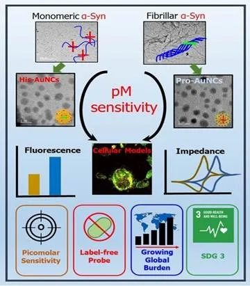 The collaboration between scientists and their research scholar came up with the solution in the form of gold nanoclusters (AuNCs) an ultrasmall, glowing particles just a few nanometers wide. By coating these clusters with naturally occurring amino acids, the team made them selectively sticky. Proline-coated nanoclusters were drawn to the normal version of α-synuclein. Histidine-coated nanoclusters latched onto the toxic aggregates. This property allowed the biosensor to distinguishes between harmless and harmful (amyloid) protein forms.