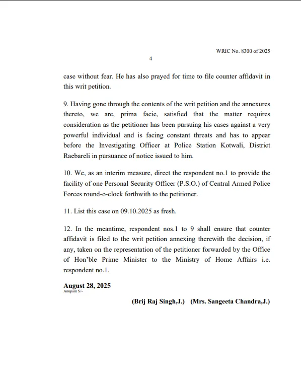 “We are, prima facie, satisfied that the matter requires consideration as the petitioner has been pursuing his cases against a very powerful individual and is facing constant threats and has to appear before the Investigating Officer at Police Station Kotwali, District Raebareli in pursuance of notice issued to him,” the Bench observed.