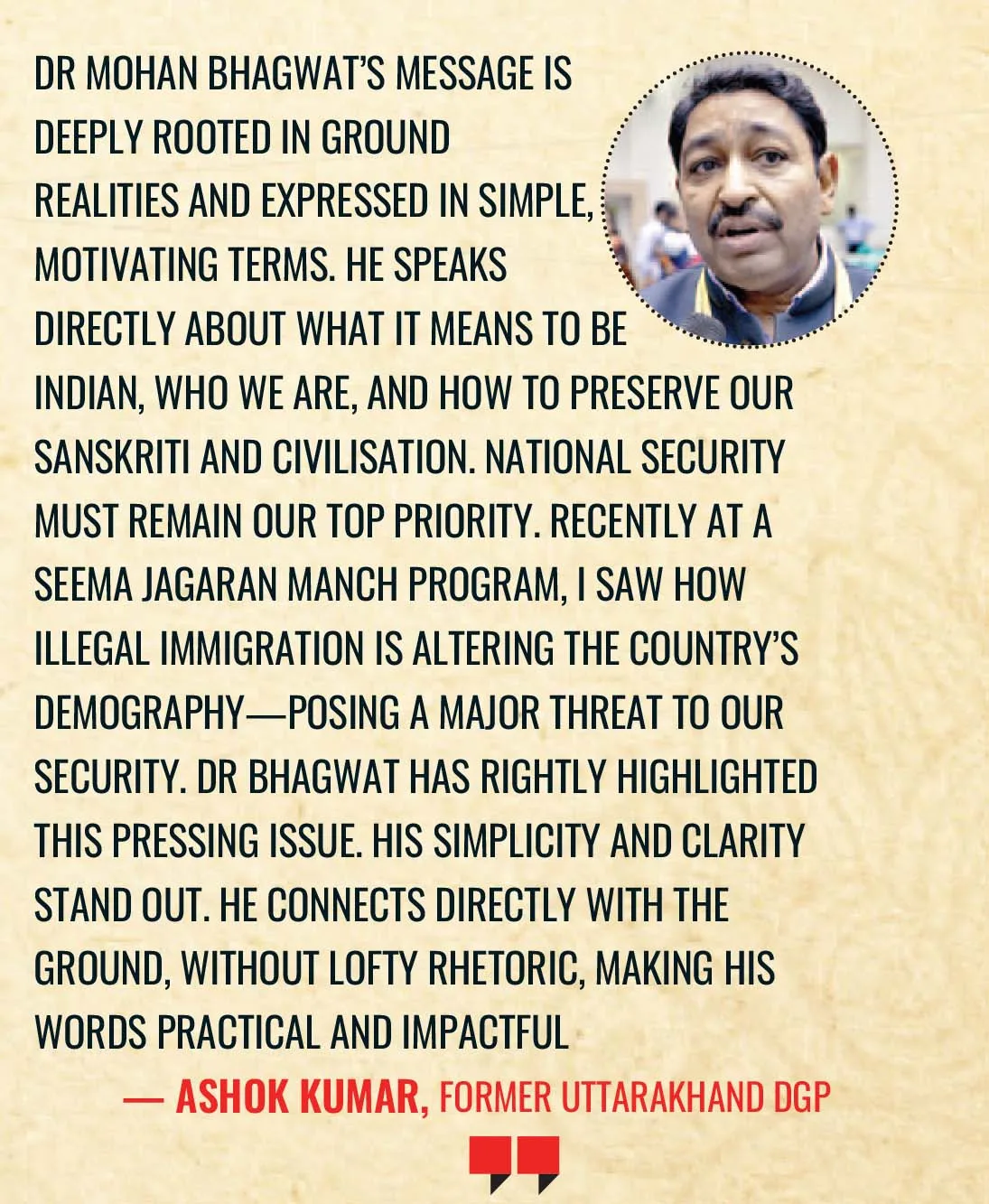 Dr Bhagwat said the Sangh had opposed the partition of Bharat, and that its adverse consequences are visible today in the neighbouring countries that were separated. “Bharat is Akhand (undivided)—this is a fact of life. Ancestors, sanskriti, and motherland unite us. Akhand Bharat is not just politics but the unity of people’s consciousness. When this sentiment awakens, everyone will live in happiness and peace.”