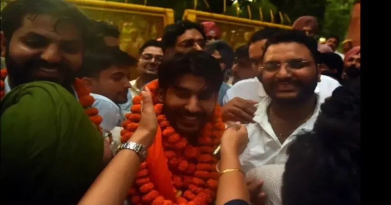 ABVP candidate Gaurav Veer Sohal, who comes from Punjab, is a 27-year-old research scholar in the Department of Laws.
