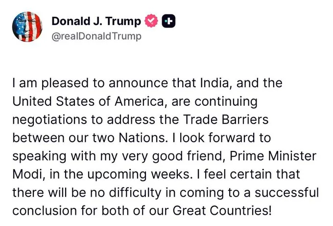 Although no official confirmation has yet come from the White House or India’s Ministry of Commerce, the statement highlights Washington’s intent to reinforce its economic and strategic partnership with New Delhi.