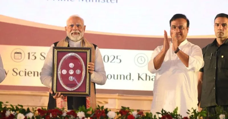 Guwahati: Prime Minister Narendra Modi on September 13 graced the event, marking the year-long centenary celebrations of the “Bard of the Brahmaputra” Bharat Ratna Dr Bhupen Hazarika, in the presence of Assam Governor Lakshman Prasad Acharya and Chief Minister Himanta Biswa Sarma at the Veterinary College Playground, Khanapara in Guwahati.