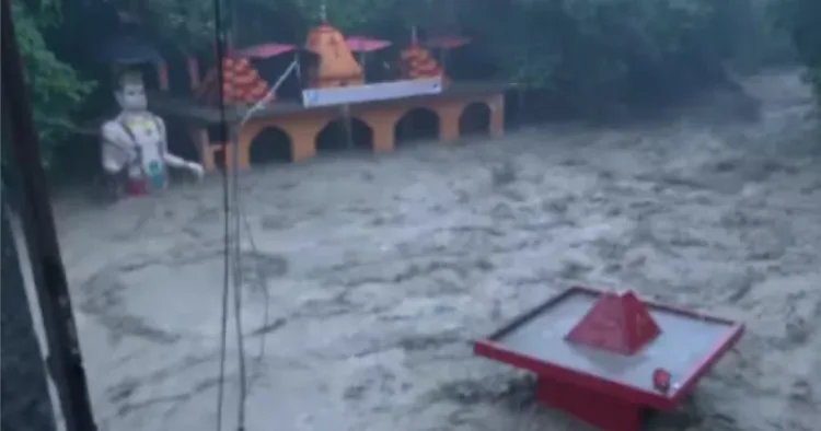 Heavy cloudburst lashed Dehradun district on September 15, causing the Tamsa river to swell and inundate the Tapkeshwar Mahadev Mandir, one of the city’s most prominent shrines. Water entered the Mandir courtyard and rose to the statue of Hanuman, though the sanctum sanctorum remained safe.