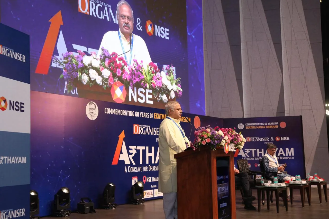 A deliberation that sought to reimagine Bharat’s developmental journey, Organiser Weekly in collaboration with the National Stock Exchange (NSE) hosted a day-long conclave titled “Arthayam: A Conclave for Dharmic Model of Development” in Mumbai. The event, held on September 19, commemorated sixty years of Ekatma Manav Darshan (Integral Humanism), the philosophy propounded by Pandit Deendayal Upadhyaya Ji.