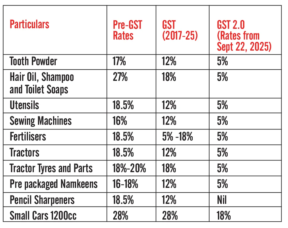 The changes introduced under GST 2.0 are substantive and visible across sectors. Everyday essentials and mass-consumption goods have shifted into the lowest slab of 5 per cent, directly benefiting households and reinforcing consumption demand. Industrial inputs have largely been placed under 18 per cent slab, reducing cost burdens for firms and creating a more rational structure for value chains. Over 33 lifesaving medicines have been exempted entirely, along with basic dietary items such as milk, paneer, and chapatis, ensuring that vulnerable households and patients experience direct relief. At the same time, important sectors like automobiles, cement, and electronics have witnessed steep tax reductions, encouraging affordability and driving growth momentum.