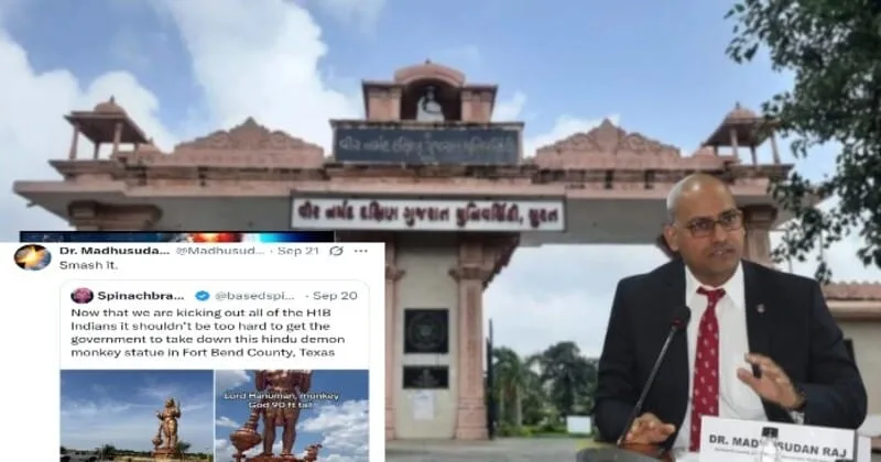 The controversy began after a resurfaced tweet from an American user stated, “Now that we are kicking out all of the H1B Indians, it shouldn’t be too hard to get the government to take down this Hindu demon monkey statue in Fort Bend County, Texas.” In response, Professor Madhusudan Raj had endorsed the sentiment by retweeting it with the remark, “Smash it,” which sparked widespread outrage.