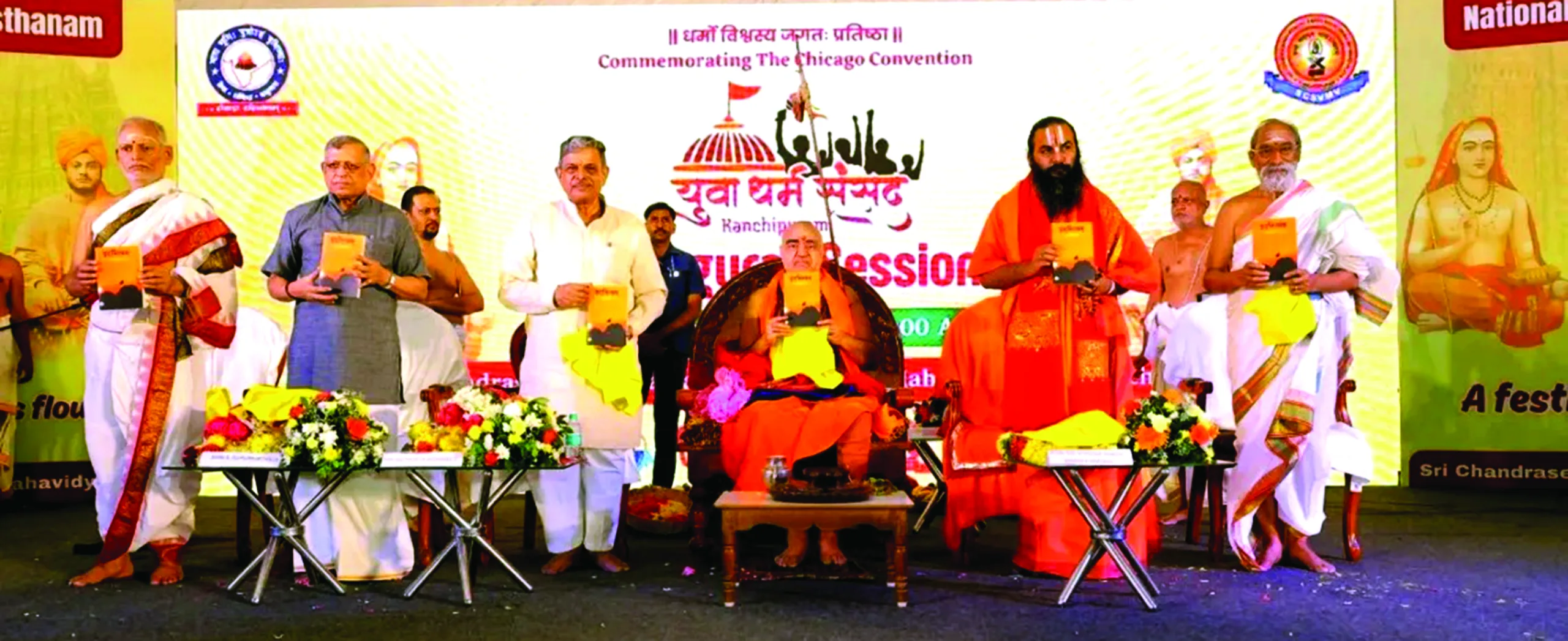 The Yuva Dharma Sansad witnessed the august presence of Pujya Shankaracharya Swami Vijayendra Saraswati of Kanchipuram, Mahant Acharya Mithileshanandini Sharan Maharaj of Shri Hanumat Nivas Ayodhya, Prof V Kutumba Shastri (former Vice-Chancellor of Central Sanskrit University Delhi and Sampurnanand Sanskrit University Varanasi), eminent thinker and economist S Gurumurthy, and renowned poet Dr Kumar Vishwas, along with 1,400 youth delegates from 18 states of Bharat.
