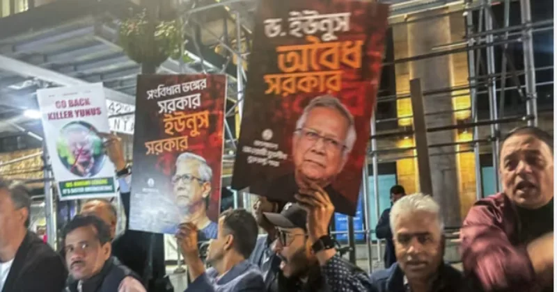 New York: Members of the Bangladeshi diaspora staged a protest outside the United Nations headquarters in New York against Muhammad Yunus, Chief Adviser of Bangladesh’s interim government, alleging a sharp increase in atrocities against minorities in the country.