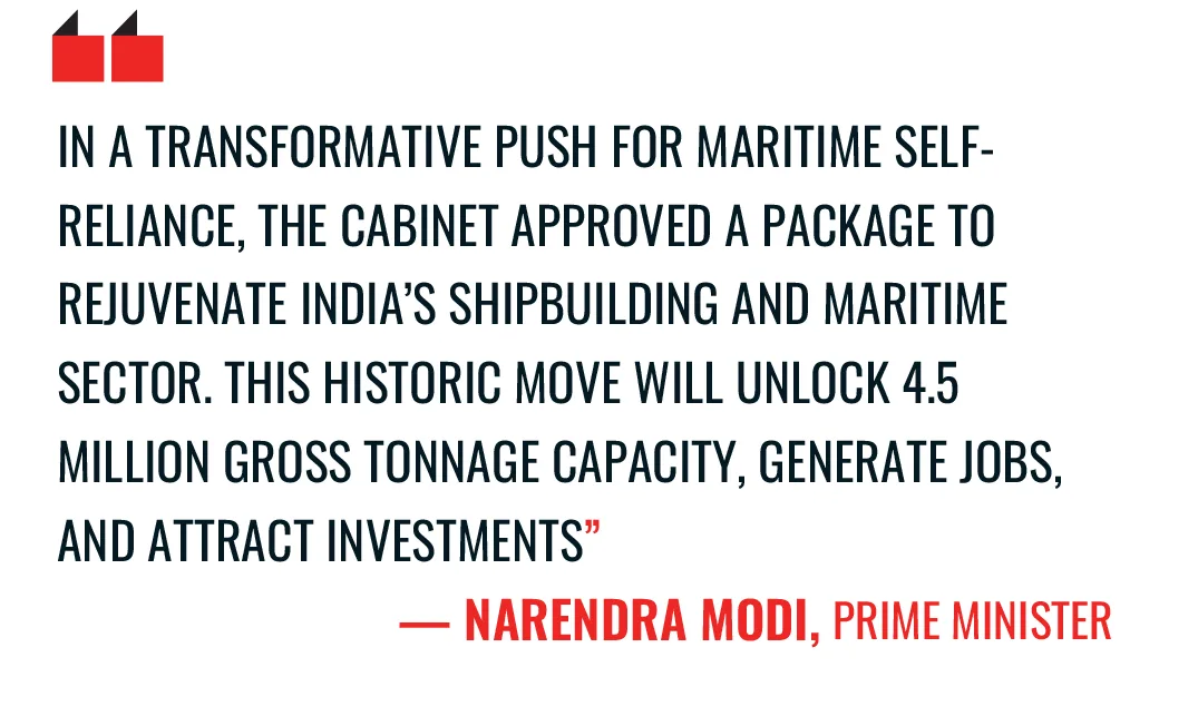 - The initiative will run for 10 years and is based on a four-pillar strategy: Strengthening domestic shipbuilding capacity, providing long-term financing solutions, promoting greenfield and brownfield shipyard development and enhancing skills, technical capabilities, and policy reforms