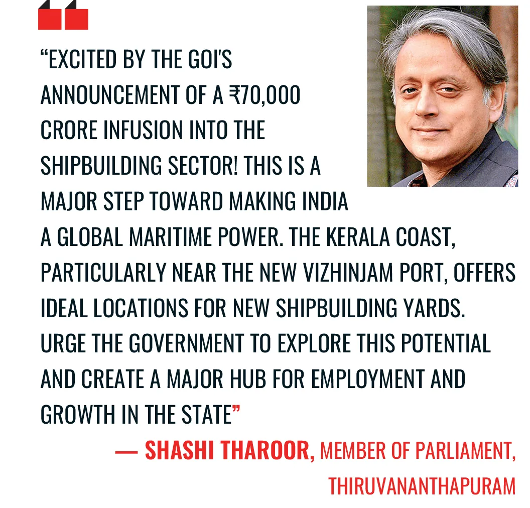 - A Shipbreaking Credit Note allocation of ₹4,001 crore has been announced to incentivise domestic shipbuilding