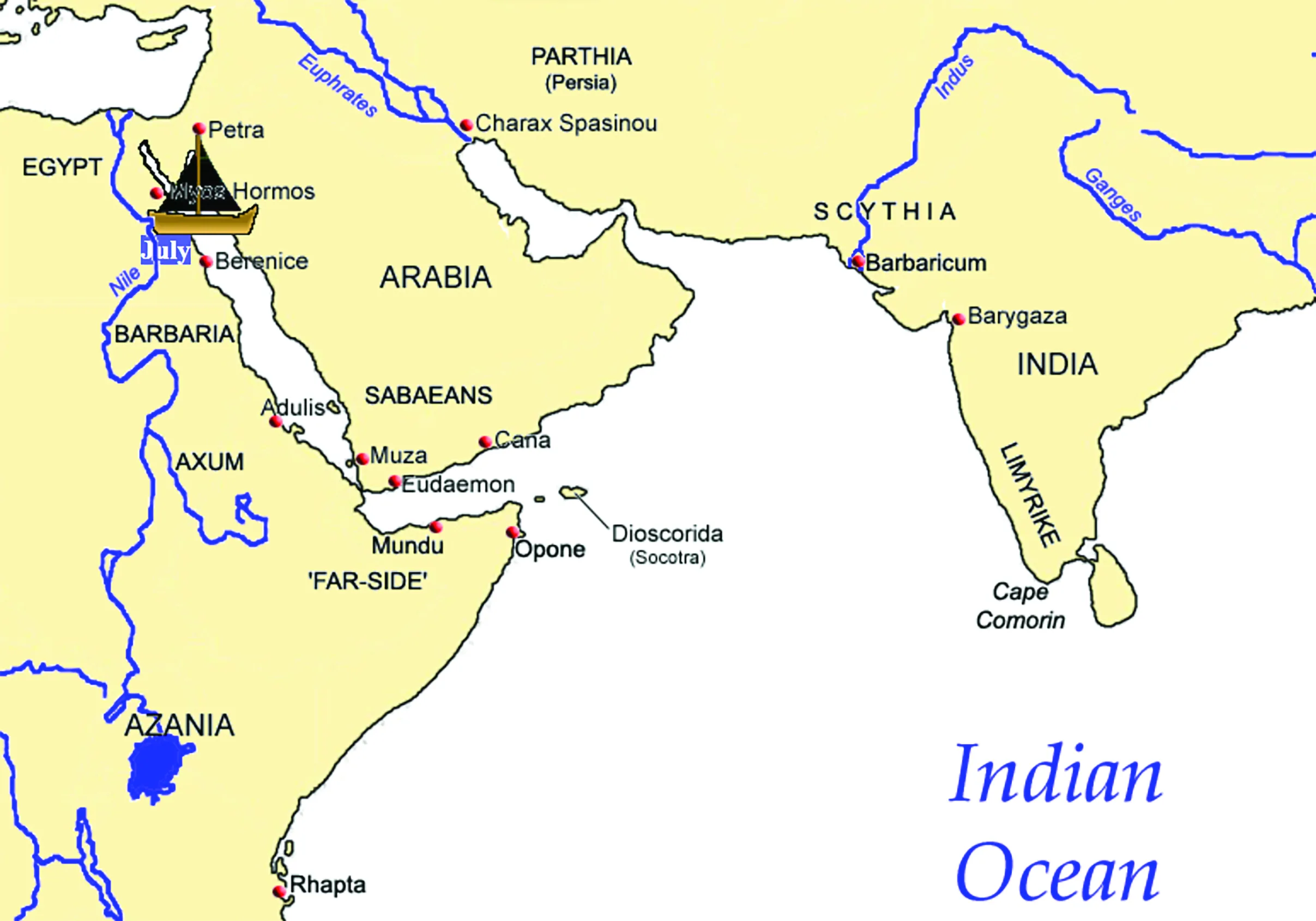 Following the Mauryas, the Andhra-Kushan period (200 B.C.–250 A.D.) is particularly notable for its robust trade with the Roman Empire. Roman gold flowed into India in exchange for luxuries like spices, silks, and gems. The sheer volume of this trade is attested to by the discovery of numerous Roman coins, particularly in the south Indian states of Tamilakam and Andhra. One can visualise the extent of Indian maritime trade through Pliny’s complaint that there was “no year in which India did not drain the Roman Empire of a hundred million sesterces (an ancient Roman silver coin). Andhra kings even minted their own coins featuring the image of a two-masted ship, a clear symbol of their naval power and a testament to their deep involvement in sea-borne commerce. The Periplus of the Erythraean Sea, a Greek sailing guide from around 100 A.D., gives us a detailed look at the bustling ports of this time. It also mentions Barygaza (Broach) as the principal trading hub for Western India, with inland towns like Paithan and Tagara supplying it with goods for export. On the Malabar coast, the port of Muziris (Muyirikodu) was a key centre for the pepper trade, visited by large “Yavana” (Greek and Roman) ships bringing gold, wine, and other goods. Another significant port was Kaviripaddinam (Pukar) on the Eastern Coast, described in ancient Tamil poems as a thriving town with warehouses for foreign goods and settlements for foreign traders who spoke various languages. Tamil merchant communities like Aruvakar, Ilam Tiruvittan and the wider Tamilakam mercantile networks were active in the Tamil-Chola and Chera region. Tamils were known for their pearl fishing industry in the Gulf of Mannar, which they called “Salabham,” meaning “the sea of gain”. Western Indian merchants from Gujarat and Saurashtra (early Gujaratis) who specialised in trade with West Asia. Coastal Bengali mariners and Tamraliptika merchants moving eastward. Jewish and Parsi trading settlements began appearing later; earlier diasporas of Indian traders were also present in the Persian Gulf.
