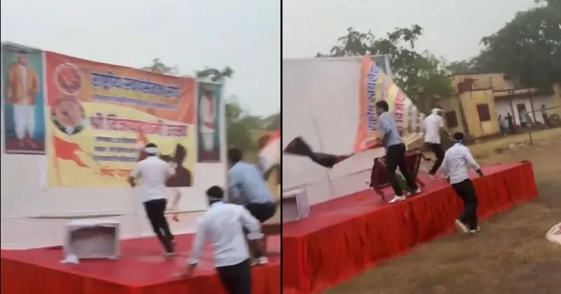 Before the sacred ritual could begin, NSUI vandals tore down banners on the main stage, sparking anger among attendees. Shockingly, among those leading the vandalism was the NSUI Rajasthan state vice-president, exposing the Congress party’s direct hand in the disgraceful act.