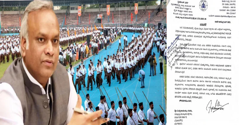 Bengaluru: As the Rashtriya Swayamsevak Sangh (RSS) marks its centenary year with a nationwide celebration of discipline, service, and patriotism, the Congress-led Karnataka government has triggered a storm of controversy. An official letter written by Minister Priyank Kharge, son of Congress president Mallikarjun Kharge, to Chief Minister Siddaramaiah, has demanded a complete ban on RSS activities in government institutions, parks, and temples.