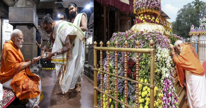 At the Vedashirvachana Mandapam, scholars from the four Vedas performed Chaturveda Ashirvachanam, invoking blessings for the Prime Minister. PM Modi received the Teertha Prasadam of the Ma, marking the culmination of his Mandir rituals.
