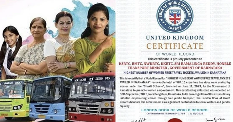 A few days ago, Siddaramaiah took to X to announce that the Shakti scheme, which provides free bus travel to women across Karnataka, had earned a place in the “London Book of World Records” for facilitating the highest number of free bus rides for women. The Chief Minister shared an image of the certificate, describing it as a proud moment for the state.