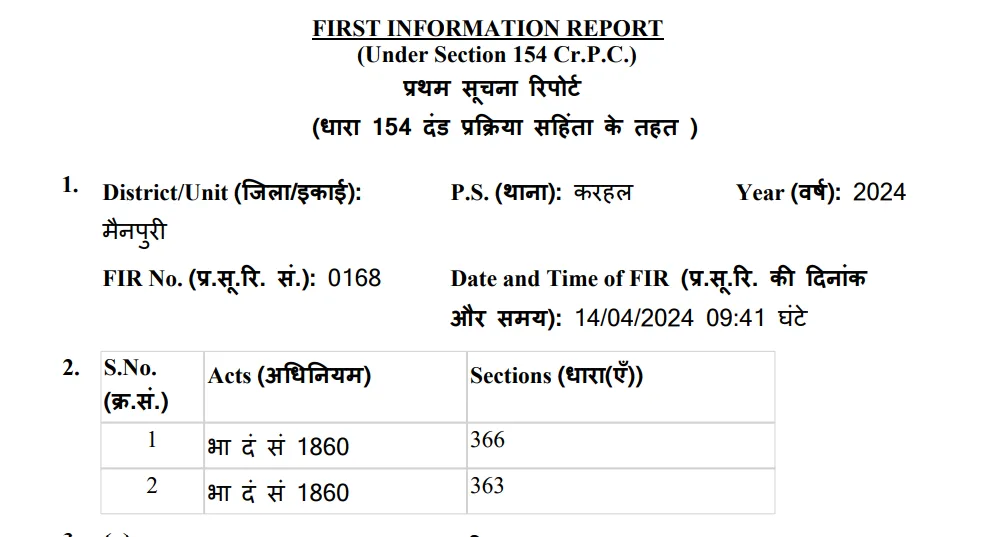 The case was initiated when the victim’s father, Charan Singh, lodged an FIR (No. 168/2024) at Karhal Police Station on April 14, 2024. Based on his complaint, Rajkumar alias Shehensah Khan was formally booked under Sections 363 and 366 of the Indian Penal Code (IPC) for kidnapping and abduction with intent to compel.