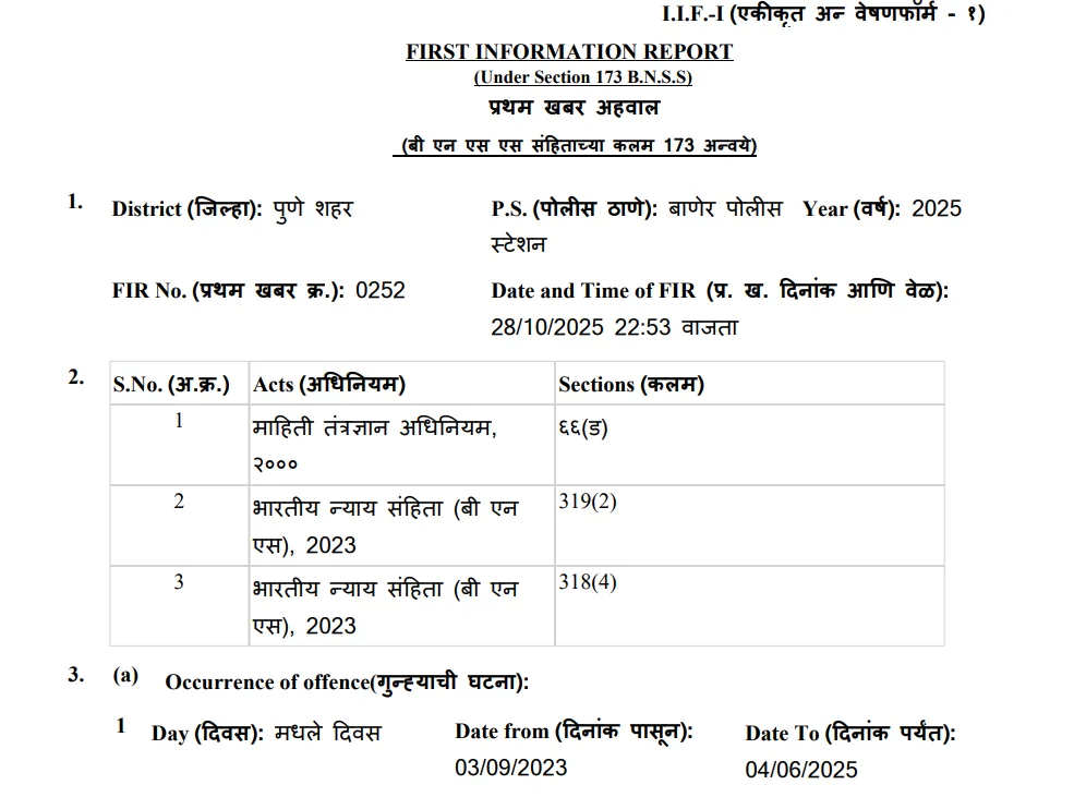 Based on his complaint, the police have registered a case under Section 66(D) of the Information Technology Act, 2000, along with Sections 319(2) and 318(4) of the Bharatiya Nyaya Sanhita (BNS) against the accused.