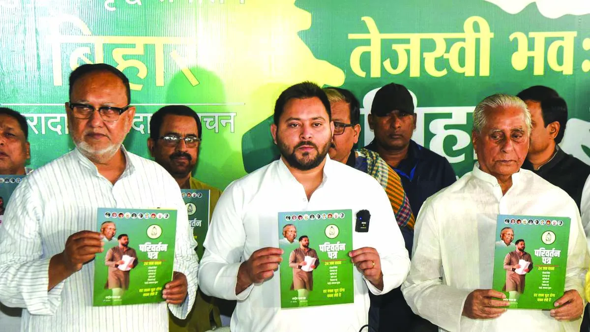 On October 30, RJD led Mahagathbandhan issued its manifesto, Bihar ka Tejashwi Prann promising one Govt job to each family within 20 days of forming the Govt. This manifesto promised 200 units of free electricity, Rs 2500 monthly for women under the Mai-Bahin Maa Yojna and restoring old pension scheme. The title of the Manifesto says clearly, it is the pledge of Tejshawi, not the Party and Mahagathbandhan because the alliance accepted Tejashwi will be CM and he will do all these, means, how he will do it, that will be his burden as it is shown in first cover page of Manifesto. However, the question is, if Tejashwi is not a seasoned economist or even not passed his 10th exam from DPS RK Puram, Delhi, can it be trusted, he can do this. This question is again and again answered by all NDA top leaders during the election campaign and new Party leader, Prashant Kishore. Tejashwi ka Prann is copied from “Modi ki Guarantee” and Modi ji thrust on “Vikshit Bharat” is copied by RJD led Mahagathbandhan because it mentioned Mahagathbandh Govt in Bihar will work for “Vikshit Bharat” and Vikshit Bihar”. This manifesto has also promised to lift the ban on toddy, raising current reservation of MBC (Most Backward Caste) in Panchayat and Municipal bodies, free health insurance up to 25 lakh, Jeevika Didis will be given permanent Govt job status, IT parks to be established and others including employment guarantee scheme for each family, Mai-Bahin yojna and old pension scheme.
