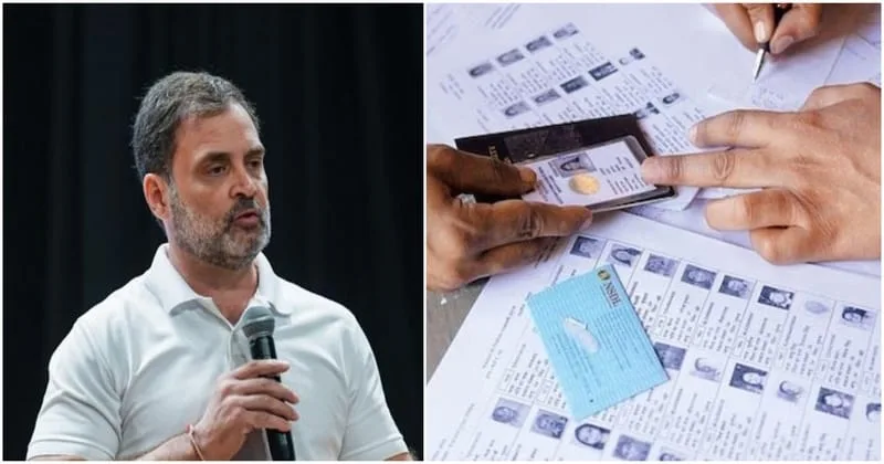 Rahul Gandhi claimed that a woman appeared to have voted 22 times across different booths using multiple names. He said the image linked to her was a stock photograph of a Brazilian model and that similar cases could involve up to 25 lakh records in the state.