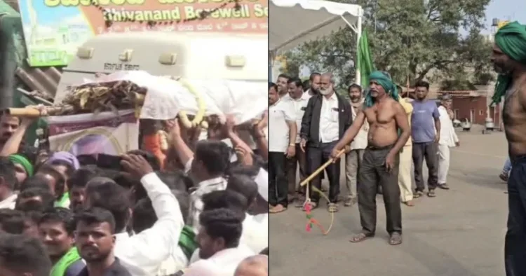The Congress government in Karnataka faces mounting anger from farmers as the sugarcane growers’ protest entered its eighth consecutive day, turning increasingly tense across the Belgaum region. Furious over government inaction and the failure to set a fair price for their crop, farmers at Gurlapura in Mudalagi taluk staged a mock funeral procession for Sugar Minister Shivanand Patil, symbolising the death of the state’s commitment to farmers’ welfare.