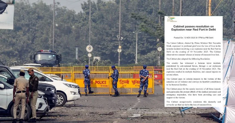New Delhi: The Union Cabinet, chaired by Prime Minister Narendra Modi, on November 12 expressed its profound grief over the loss of lives in the terrorist incident involving a car explosion near the Red Fort in Delhi on the evening of November 10.