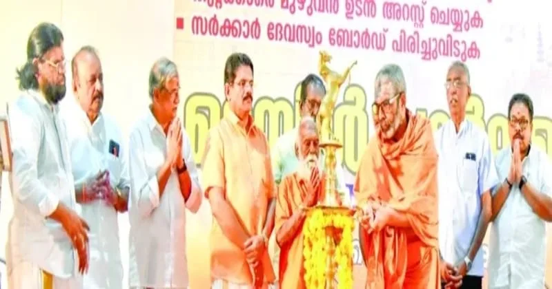 Hindu Aikyavedi state patron K.P. Sasikala Teacher presented the ‘chargesheet’ against the government. State vice-president E.S. Biju introduced the resolution. Hindu Aikyavedi state working president Valsan Thillankkerry delivered the valedictory speech. Kummanam Rajasekharan, former Mizoram Governor and senior BJP leader, spoke on the occasion. Padmashree awardee Acharya Kunjol Master was present. Hindu Aikyavedi general secretary K.P. Haridas and Sabu Santhi (santhi meaning temple priest) also spoke.