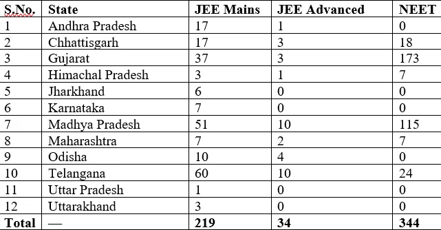 Many state governments particularly Madhya Pradesh, Maharashtra and Andhra Pradesh, have established Centres of Excellence which impart systematic training for JEE and NEET aspirants. These institutions follow standardized curriculum, regular assessment cycles and collaborates with accredited partners with experience in preparing students for competitive examinations.