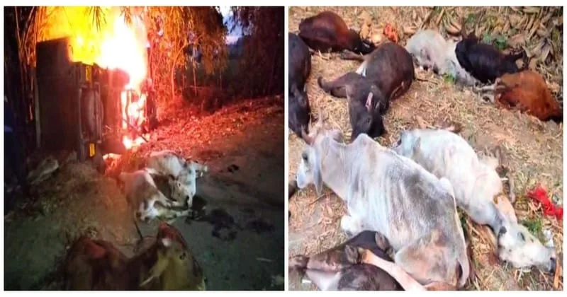 Local villagers rushed to the scene, pulled out the surviving animals, and alerted the authorities. However, anger soon escalated, with residents torching the overturned vehicle, alleging that repeated complaints regarding illegal cattle movement have fallen on deaf ears.