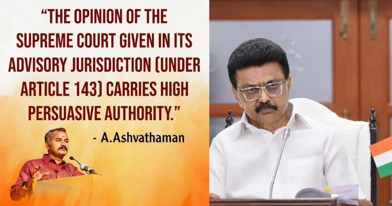 Taking to his social media platform X, Advocate Aswathaman said, “the Advisory Jurisdiction of the Supreme Court, especially when delivered by a full bench, carries strong persuasive authority. But even with the Supreme Court’s Article 143 opinion going against your stand, you still try to land on your feet and act as if nothing is your fault. Your constant attempts to sideline the Governor in appointing Vice-Chancellors are not for Tamil Nadu’s welfare but for your political interest. Tamil Nadu people already know how Vice-Chancellor posts had been auctioned for money, and giving you full control will only ensure this pattern continues. If you truly want to protect Tamil Nadu, then protect it from police atrocities and lock-up deaths, protect it from the drug mafia, protect women from rising violence, and protect the youth from cash-for-jobs scams, and protect it from state-sponsored human trafficking – Kidney theft. Stop wearing the mask of a protector of state rights. Everyone knows what you are trying to protect.”