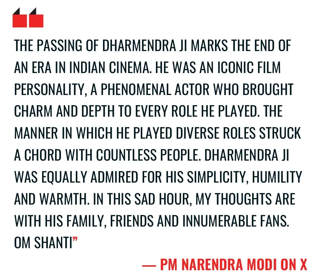 Veteran actor and the undisputed He-Man of Bollywood Dharmendra, who passed away at his Mumbai house on November 24 just two weeks before his 90th birthday, lives on. When he entered the film firmament, Dharmendra, a young untrained actor from Sahnewal in Punjab, was described by critics as a romantic hero whose charming looks and large expressive eyes made him the most handsome man of Hindi cinema.