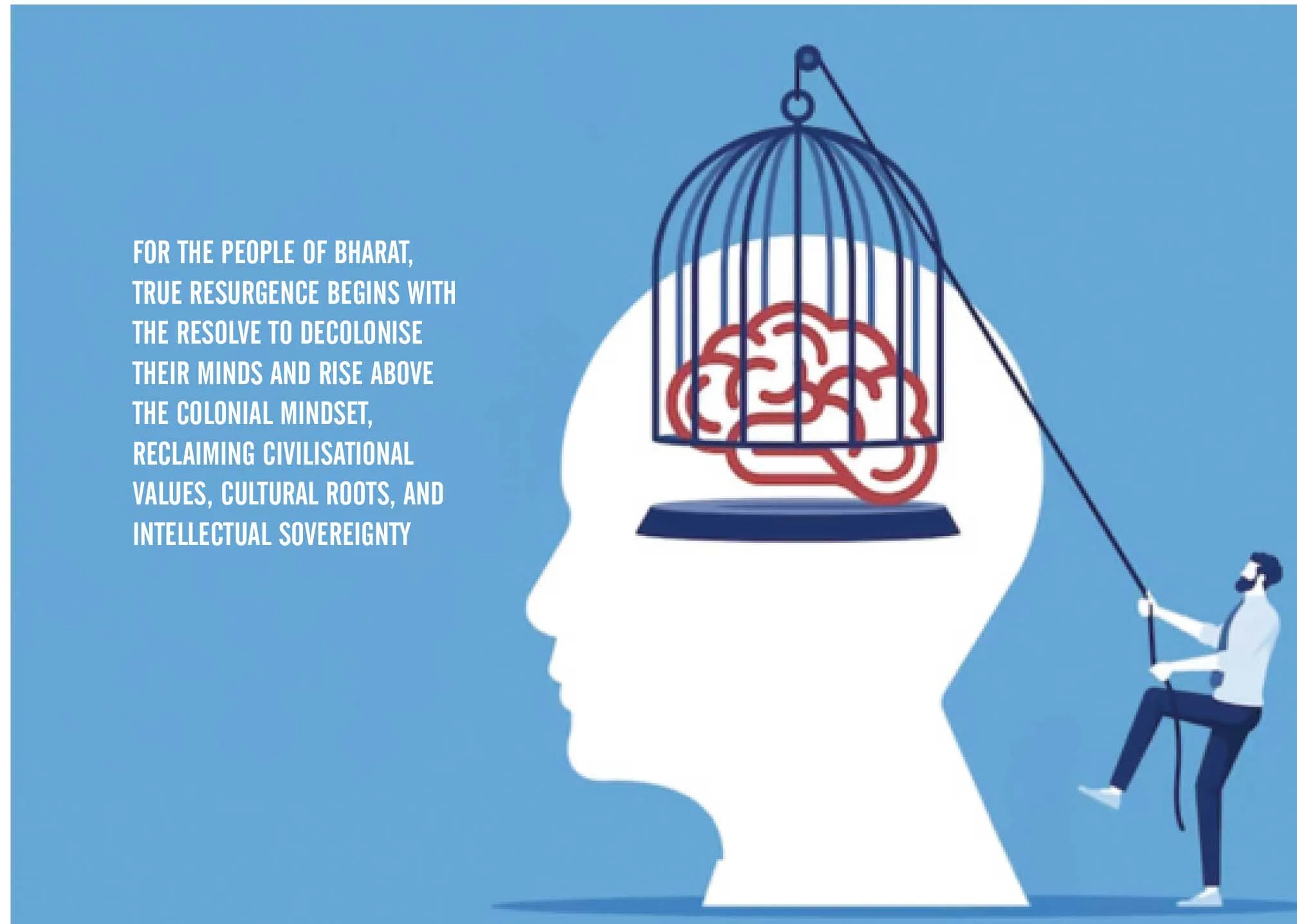 It was hoped that after the hard-won Independence, the great nation of Bharat would carve out its own path in accordance with its culture, heritage, traditions, and lofty ideals—from governance and administration to the diverse domains of life. It was expected that the country, while remaining rooted in its cultural foundations, would establish its own exemplary models of education, healthcare, research, science, innovation, good governance, and development. Unfortunately, power was transferred in 1947, but the character and structure of the system did not change. Bharat did attain political freedom, yet it has not been fully successful—even to this day—in creating, developing, and establishing a system based on its own Self (Swa & Swatwa). As a result, from education to art, literature, and cinema; from governance to law and jurisprudence; and from architecture, science, and medicine to tourism—the influence and dominance of foreign systems, foreign perspectives, and foreign frameworks continue unabated. Without transforming the colonial system, its methods, and its mentality, even imagining a strong foundation for a developed Bharat is impossible.