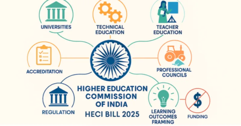 India’s higher education sector is currently fragmented, with different agencies that are overseeing general, technical, and teacher education. The HECI Bill 2025 seeks to consolidate these functions into a unified structure guided by four verticals, as recommended in NEP 2020: