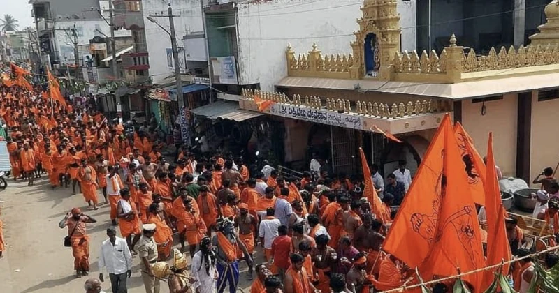 BENGALURU: Srirangapatna, the historic town of Karnataka, became a centre of religious and cultural fervour as the Hindu Jagran Vedike organised the Sankirtana Yatra of the Mudala Dargava Hanuman Maladharis. Devotees filled the streets, chanting Jai Shri Ram and Jai Hanuman, creating an atmosphere charged with devotion, historical consciousness, and a firm assertion of religious identity. The procession, which concluded at the Sri Ranganathaswamy Mandir, sent a resounding message as it passed the Jamia Masjid: “We will build a mandir only.”
