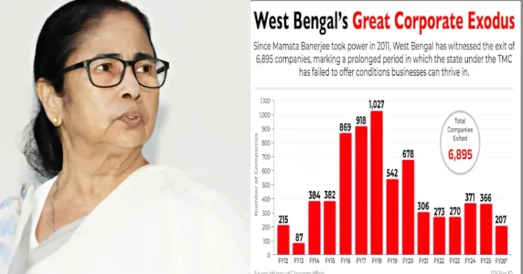 Between 2011 and 2025, 6,895 companies moved their operations out of West Bengal a trend economists describe as structural outmigration, not a cyclical fluctuation. What began as a trickle in the early years of Mamata Banerjee’s rule accelerated into a steady corporate evacuation.