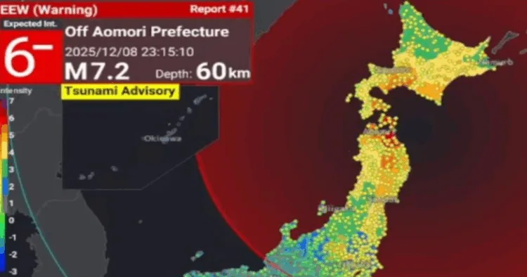 Tokyo: Japan issued a tsunami warning after a series of strong earthquakes struck off the east coast of Aomori Prefecture on the night of December 8, prompting authorities to urge residents in coastal areas to move to higher ground and remain there until further notice.