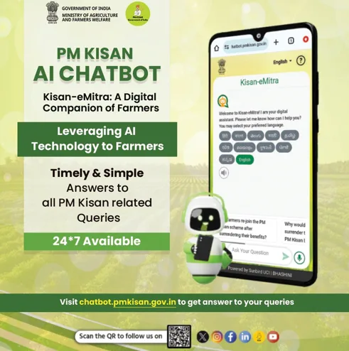 The Digital support by the government in form of Kisan e-Mitra has been designed to be a direct and everyday service relevant to the farmer. As a voice based AI-powered chatbot, Kisan e-Mitra offers simplified access to information related to major government programmes such as PM Kisan, PM Fasal Bima Yojana (PMFBY) and Kisan Credit Card (KCC). In a sector where official forms, documents and eligibility criteria is generally complicated. Kisan e-Mitra offers an obvious advantage, also it responds to questions in 11 regional languages, including local dialects and does away with the requirement for farmers to handle complex digital interfaces. The system answers more than 8,000 queries each day and has already answered over 93 lakh farmer queries so far.
