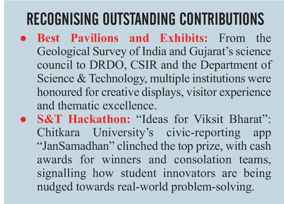 The specially curated Students’ Science and Technology Village became a symbol of this youth-centric approach. Haryana Chief Minister Nayab Singh Saini, attending as Chief Guest on Day two, formally inaugurated the village and evocatively described it as the “New Nalanda” of modern India – a living campus where learners could interact directly with scientists, technologists and innovators.