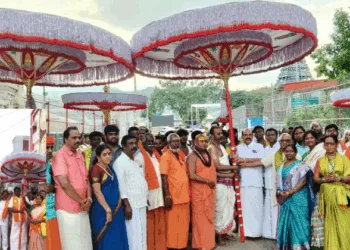 Bharat Tamil Nadu: Beautifully decorated silk umbrellas donated to Bhagwan Balaji at Tirumala for annual Brahmotsavam